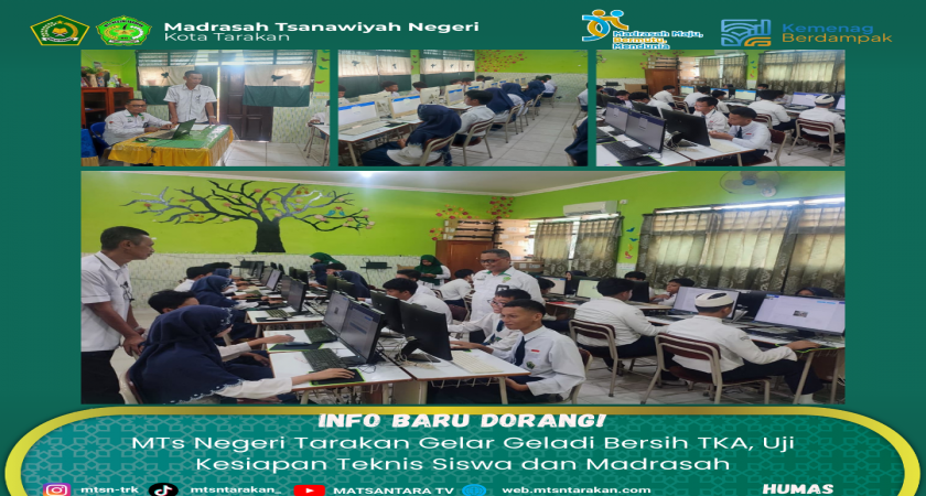 Dengan terlaksananya geladi bersih ini, MTs Negeri Tarakan optimistis mampu menyelenggarakan TKA secara maksimal sekaligus menunjukkan komitmen madrasah dalam meningkatkan kualitas evaluasi pembelajaran secara profesional dan terintegrasi.